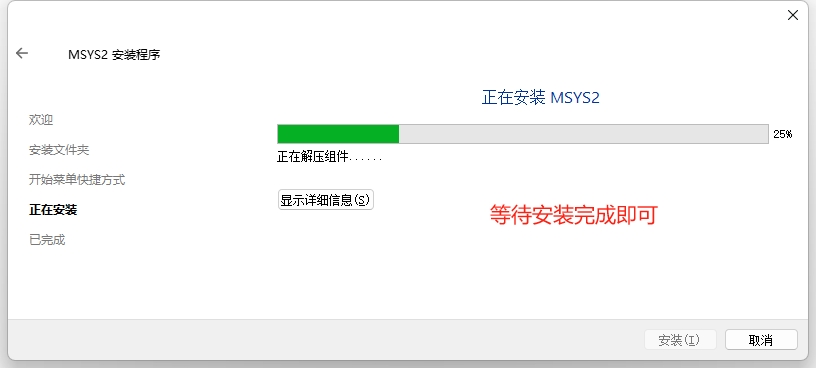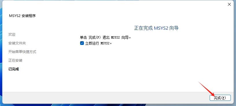 2. 运行安装程序。MSYS2 需要 64 位 Windows 8.1 或更高版本。(双击运行)
