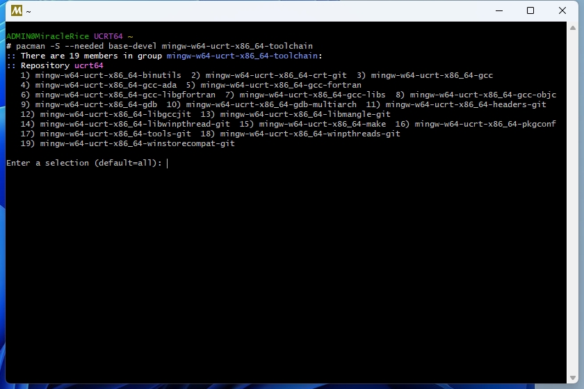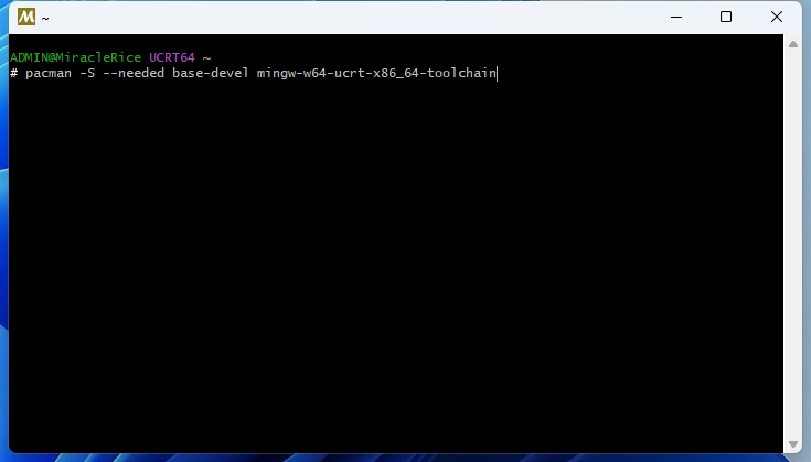 pacman -S --needed base-devel mingw-w64-ucrt-x86_64-toolchain