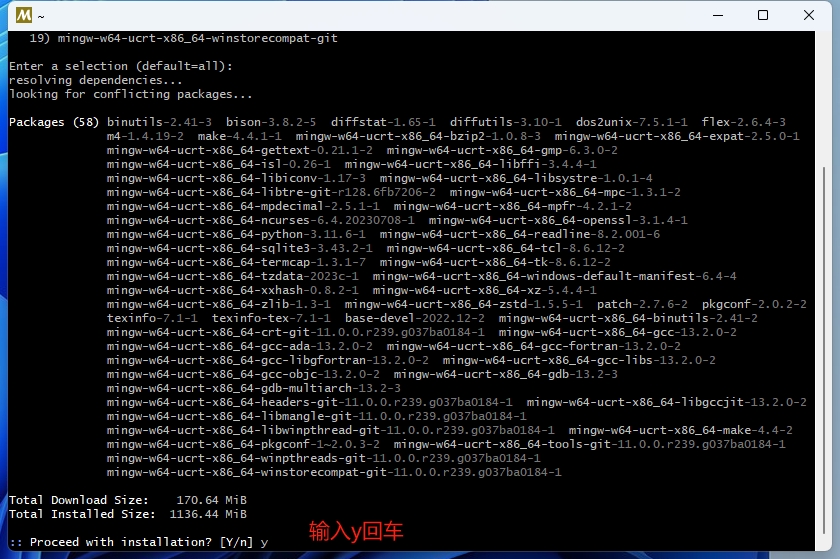 8. 输入y回车,等待下载完成即可,出现error则重复6-8步