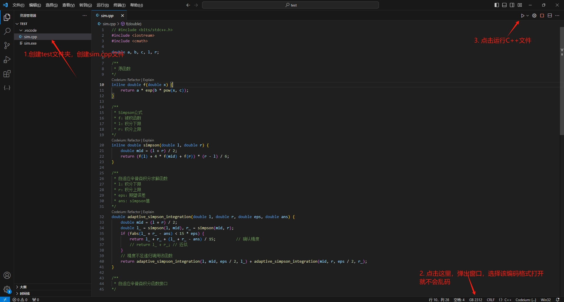 5. 创建文件sim.cpp,复制以下代码到你的sim.cpp文件中
